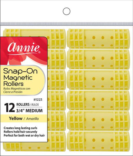 #1223 Annie Medium Snap-On Magnetic Rollers 12Pc Yellow (6PC)