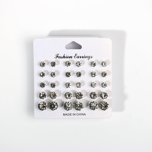 Rhinestone Stud Earrings by the Dozen #ERRST102SV - Silver (12PC)