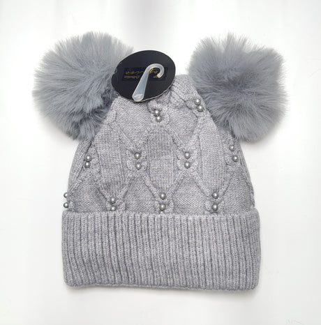 Fashion Double Pom Pom Pearl Knit Beanie #AHT1077 Gray (PC)
