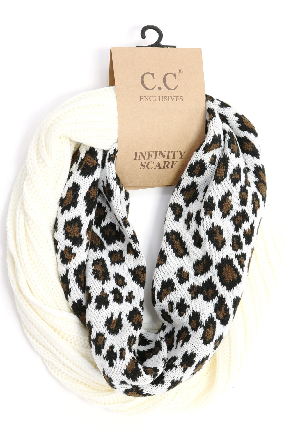 C.C. Ribbed Knit Leopard Accent Infinity Scarf #SF80 (PC)