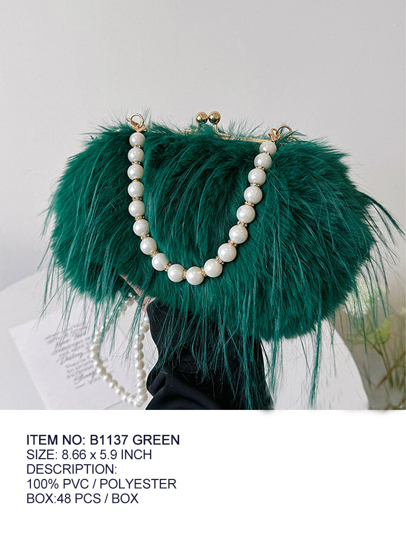 Fashion Shoulder Furry Pearl Bag #B1137 - Multiple Colors (PC)