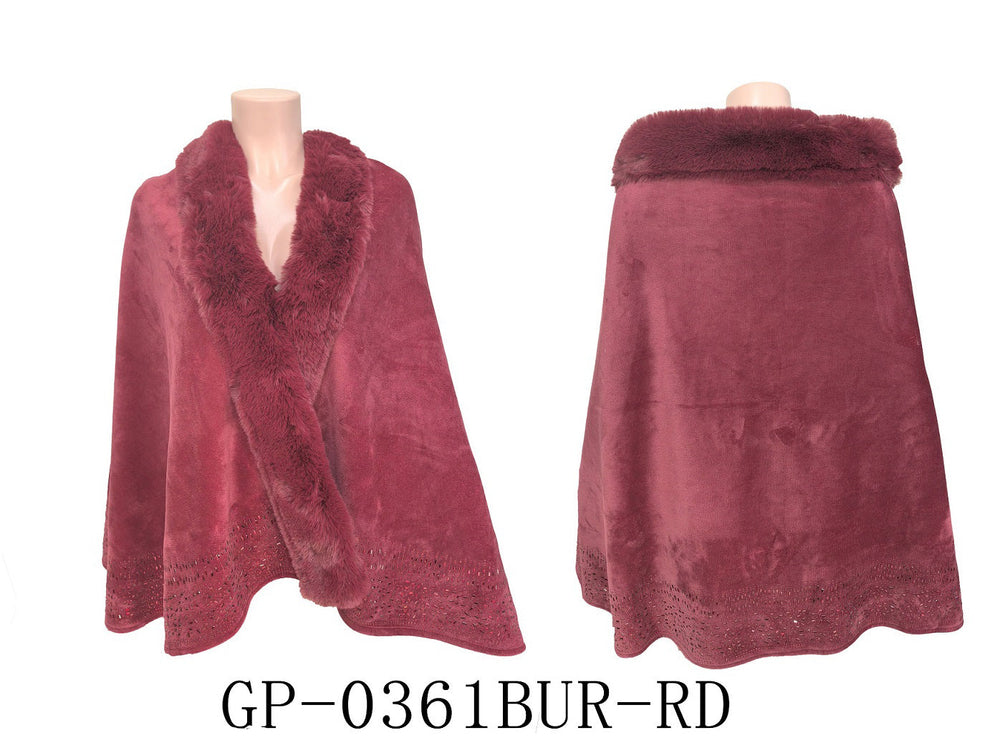 Fashion Fur Trim Winter Poncho #GP-0361 - Multiple Colors (PC)